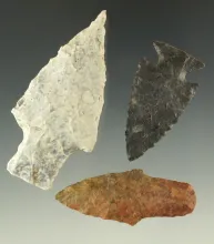 Set of three assorted arrowheads found in Texas in good condition. Largest is 2 1/2". |