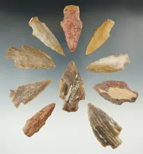 Set of 10 assorted petrified wood points found in Texas, largest is 2 1/2". |