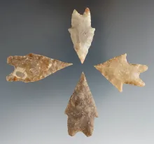 Set of four Texas Pedernales points, largest is 2 1/4". TEXAS 160.00