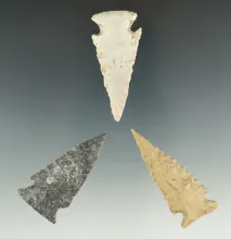 Ex. Museum! Set of three Ensor Points found in Texas in nice condition, largest is 2 3/8". TEXAS 90.00