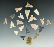 Group of 20 assorted Texas arrowheads, largest is 7/8". TEXAS 140.00
