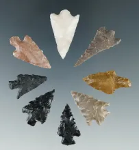 Set of 8 Assorted Arrowheads found in Oregon and Washington, largest is 1 1/16". |