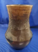 7 1/4" tall nicely style pottery vessel that is signed by Susie Williams, Navajo. |