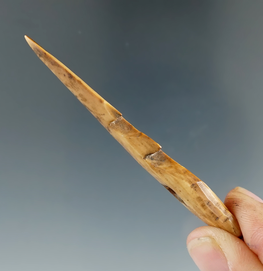 From the collection of Mark Van Horne. 2 13/16" Harpoon Foreshaft made from Fossilized Ivory, found in Alaska. Stermer COA.