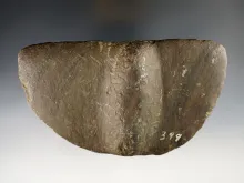 3 1/4" Bannerstone recovered in Ohio. Made from beautiful brown Banded Slate. OHIO 600.00