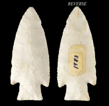 3 13/16" Dovetail made from Burlington Chert. Found in Jersey Co., Illinois. Very well flaked. |