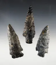 Set of 3 nice Ohio Points made from Coshocton Flint. The largest is 3 3/4". OHIO 45.00