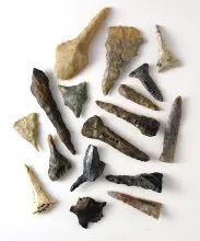Exceptional flaking on this 3" Archaic Drill made from Flint Ridge Flint. Found in Ohio. OHIO 190.00