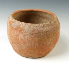 4 3/4" wide x 3 7/8" tall Ban Chang Pottery Vessel with a highly incised design. Thailand. |