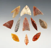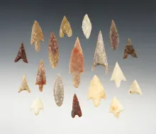 Set of 18 colorful African Neolithic points. The largest is 1 15/16". |