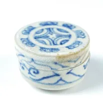 1 7/16" x 1" miniature lidded jar with exceptional paint design. From the Hoi Ann Shipwreck! |