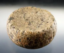 2" diameter Perforated Discoidal made from speckled Granite. Found in Northern Illinois. |