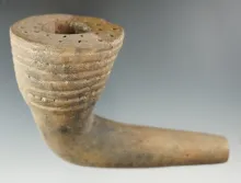 Beautifully designed Iroquois clay flared rim trumpet pipe which is restored |