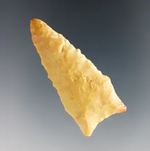Finely serrated 1 9/16" Dalton made from patinated Cobble Chert. Found in Arkansas. ARKANSAS 140.00