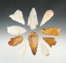Set of 10 Archaic Points found in McDuffie Co., Georgia. The largest 2 3/4". |