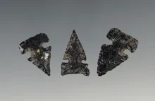 Set of 3 Obsidian Arrowheads made from Obsidian. Found in Twin Falls, Idaho. |