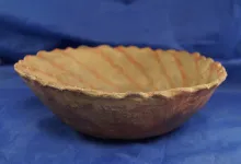 8 5/8" Wide nicely decorated Pie Crust Bowl that is painted on the interior. Found in Scott Co., MO.