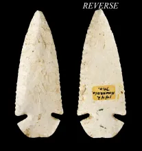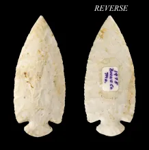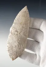 3 7/8" beautifully flaked Dovetail made from high-quality flint. Recovered in Erie Co., Missouri. |