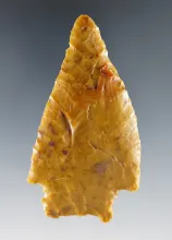 Exceptional flaking in style on this beautifully serrated 3 1/8" Sidenotch. Recovered in Nevada. |