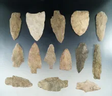 Group of 14 assorted Flint Knives found in New Jersey. Largest is 3 5/8". NEW JERSEY 80.00