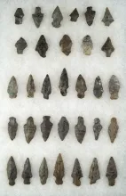 Group of 32 Mississippian Triangle points, largest is 1 7/8" all found in New York. |