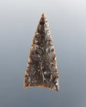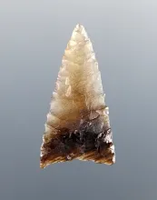 1 5/16" beautifully flaked Triangle Point made from Knife River Flint. Found in North Dakota. |