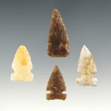 Set of 4 Knife River Flint points. Boley Site in Morton Co., North Dakota. Largest is 1 1/8". |