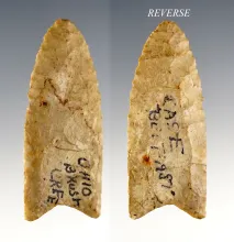 Nice 4 7/16" Paleo Knife made from Nellie Chert. Found in Wayne Co., Ohio. Ex. Larry Morris. |