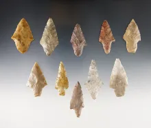 Set of 10 assorted Gary Points found in Oklahoma. The largest is 2 1/8". |