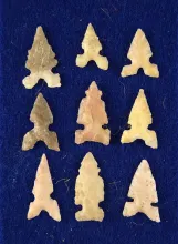 Set of 9 assorted Texas Birdpoints glued to cardboard. Soak in hot water to remove. |