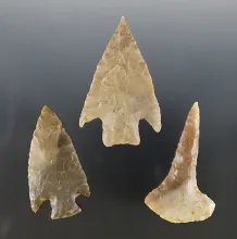Set of 3 nicely made Texas points. The largest is 2 7/16". Certificate of Museum Deaccession. |