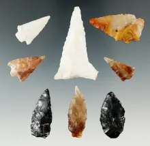 Group of Eight assorted flaked artifacts found in southern Utah, largest is 1 7/8". |