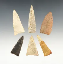 Set of 6 nice Midwest Triangle points. The largest is1 15/16". |
