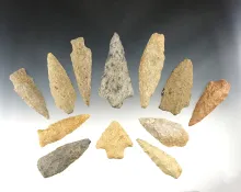 Set of 12 nice points found in the Eastern U.S. The largest is 3 3/8". |