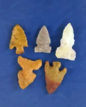 Set of five assorted Western Bird Points, largest is 15/16". |