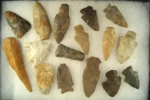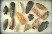 Group of 15 assorted Flint arrowheads and knives from the Midwest, largest is 4 5/8". Ex. Cowan Hood