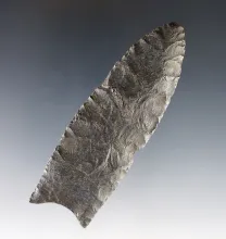 Nice! Excellent serrations on this 3 1/2" Pine Creek made from Fort Payne chert - Kentucky. |