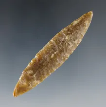 2 3/16" Archaic Thebes Bevel made from a nicely colored speckled flint. Fayette Co., Ohio. |