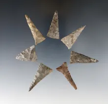 Set of 7 well flaked and nicely styled Ohio Triangle Points. The largest is 1 5/8". |