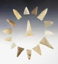 Set of 15 well patinated Midwest Triangles. The largest is 1 7/8". |