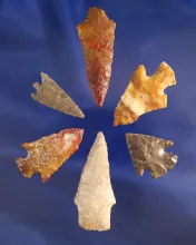 Set of six arrowheads, largest is 2 1/16". Wishram area of the Columbia River. |