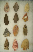 Set of 12 Assorted Arrowheads found in various locations, largest is 2 1/2".. | 75.00 | ||