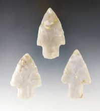 Set of three late Adena Culture Points made from Flint Ridge Flint Chalcedony. Largest is 2 7/16". |