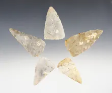 Set of 5 Ohio Cache Blades made from Flint Ridge Flint. The largest is 2 1/2". |