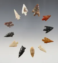 Group of 12 assorted points, largest is 1". Found near the Columbia River. Ex. Wilke Museum. 50.00
