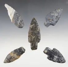 Set of 5 Ohio Adena Points made from Coshocton Flint. The largest is 3 3/16". OHIO 60.00