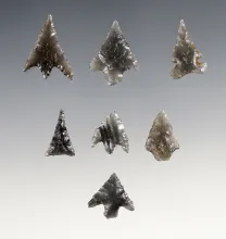 Set of 7 assorted Obsidian points found in the Western U.S. The largest is 15/16". 35.00
