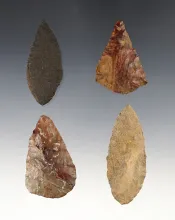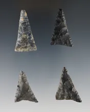 Set of 4 Ft. Ancient Triangle Points -Madison Co., Ohio. Ex. Bill Likens. The largest is 1 5/8". |