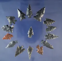 Set of 14 assorted Midwestern Arrowheads, largest is 2 7/8". 25.00