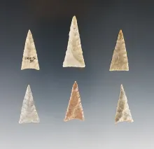 Set of 6 nicely flaked Triangle Points found in the Midwestern U.S. The largest is 1 1/2". 40.00